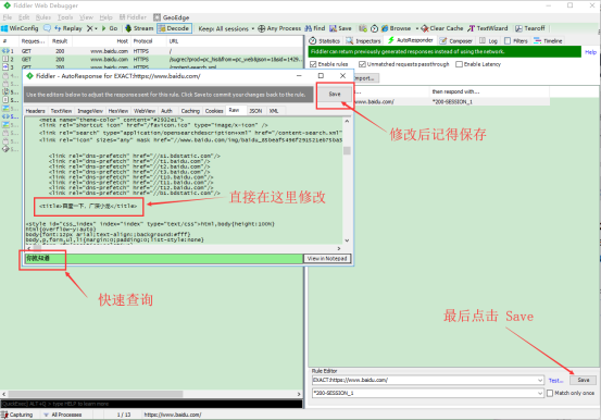 4.出现这样的页面就可以任意改动了,改动后点击 Save 保存下就可以了,我这里设置它的响应信息“百度一下,你就知道”改为:百度一下,广深小龙,步骤如下: