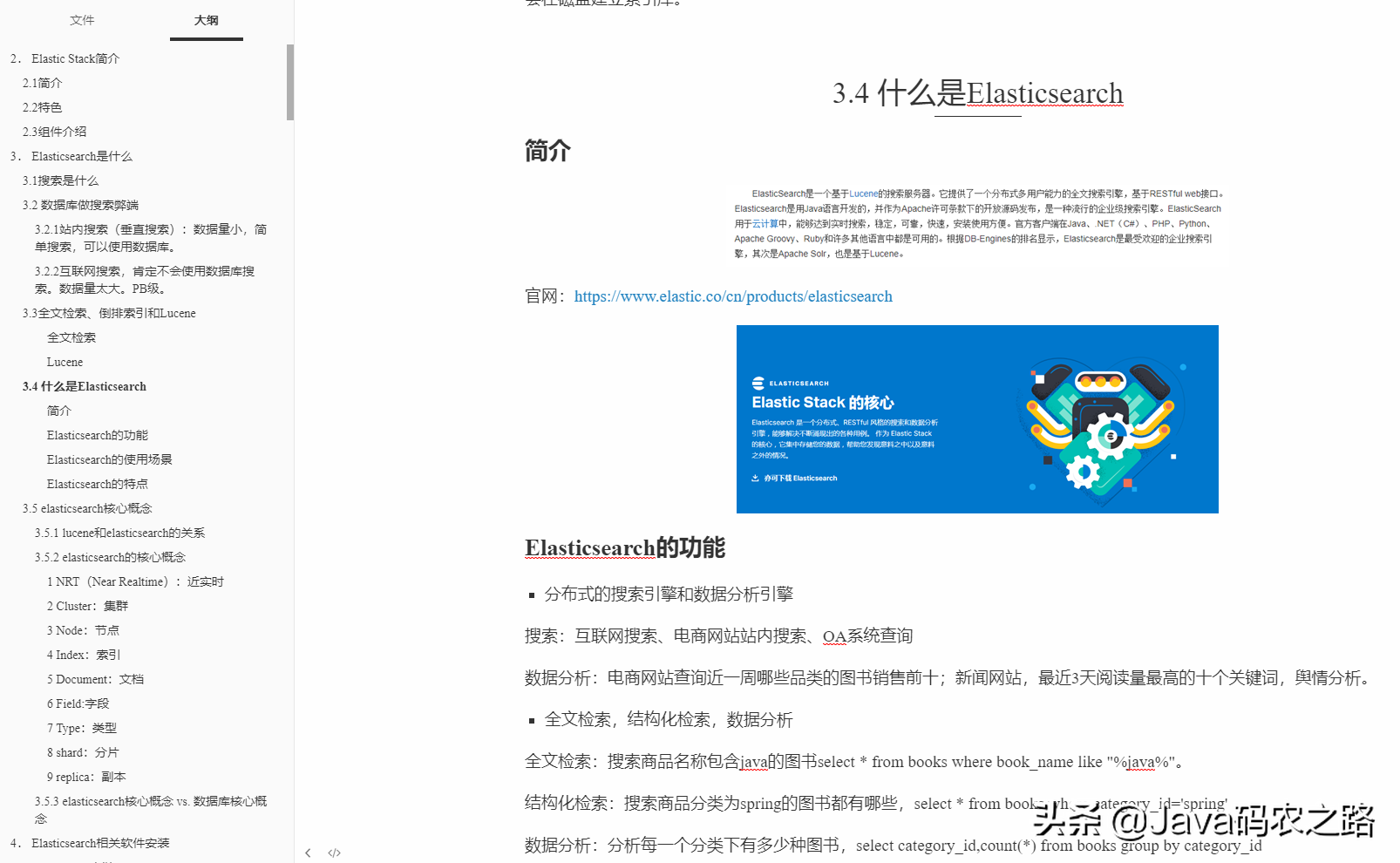Elasticsearch 核心知识手册笔记内容展示
