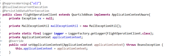 这里实现了ApplicationContextAware的接口,是因为定时任务job是在quartz中实例化出来的,不受spring容器的管理。所以这里用注解注入服务类是注入不了的