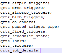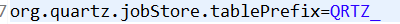 这些表都是以QRTZ_为前缀的,这是默认的前缀。如果你需要用到其他前缀(个性化需求,或需要配置多个quartz实例),可以在以下项配置(在quartz.properties中)。