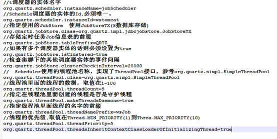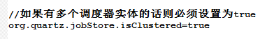 默认文件名称quartz.properties,通过设置"org.quartz.jobStore.isClustered"属性为"true"来激活集群特性。在集群中的每一个实例都必须有一个唯一的"instance id" ("org.quartz.scheduler.instanceId" 属性), 但是应该有相同的"scheduler instance name" ("org.quartz.scheduler.instanceName"),也就是说集群中的每一个实例都必须使用相同的quartz.properties 配置文件。除了以下几种例外,配置文件的内容其他都必须相同: