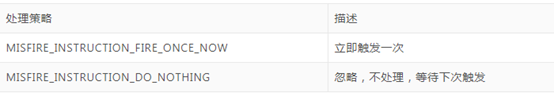 处理misfire job的策略,需要在创建trigger的时候配置,每种trigger对应的枚举值都不同,具体在接口里面有定义。CronTrigger有2种处理misfire的策略: