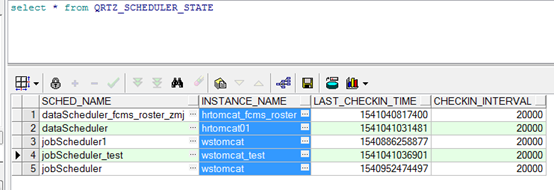 instance_name:配置文件中org.quartz.scheduler.instanceId配置的名字,如果设置为AUTO,quartz会根据物理机名和当前时间产生一个名字。