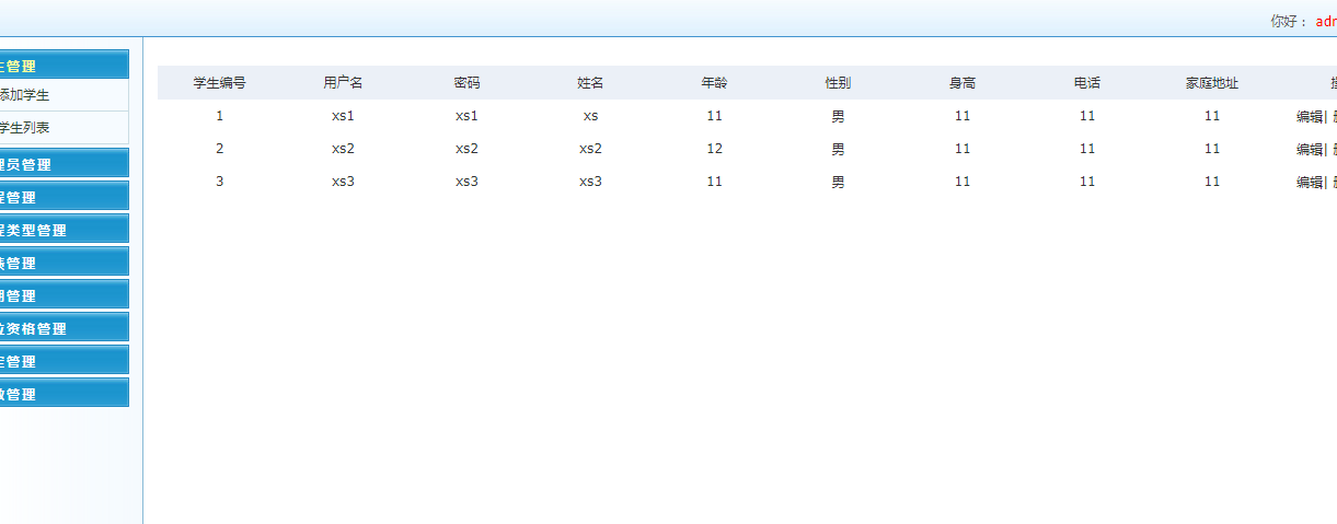 1、管理员账号:admin密码:admin 学生账号xs1,xs1