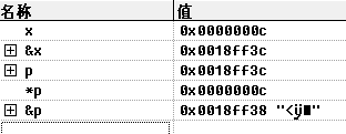 指针也变量也是需要存储空间的 p在内存中的地址是 0018FF38 ,它里面的内容是x的存储地址 0018FF3C。