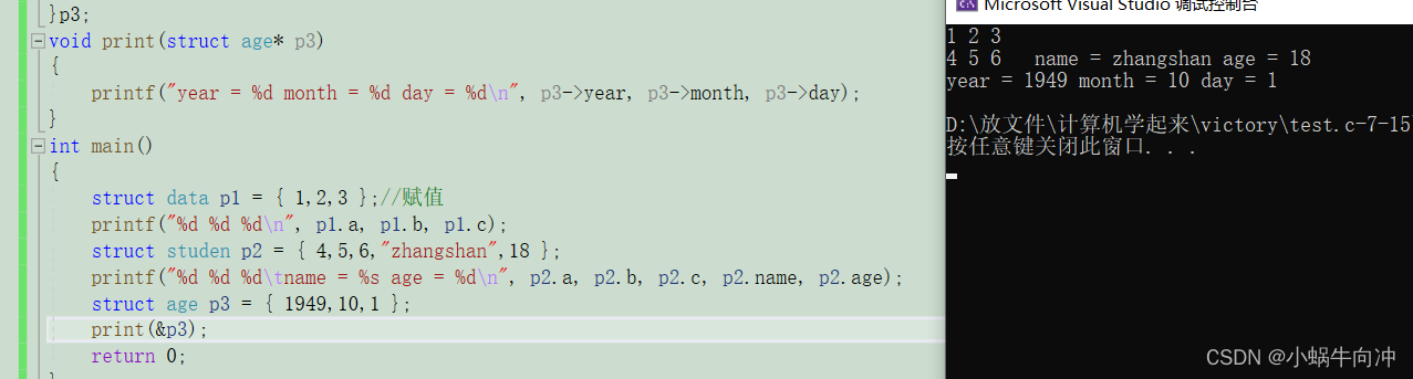 printf("%d %d %dtname = %s age = %dn", p2.a, p2.b, p2.c, p2.name, p2.age);