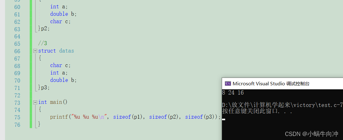 当最大成员大小不是最大对齐数的整数倍的时候,就要对齐到最大对齐数的整数倍