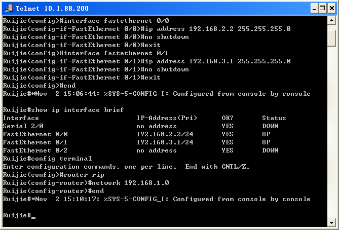 (3)、在路由器2上配置 RIP V1 路由协议