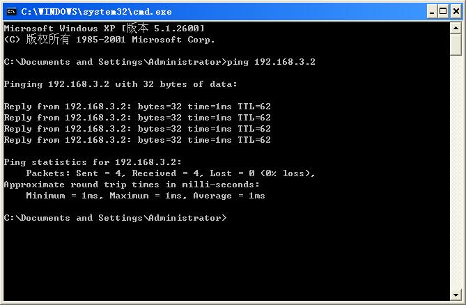 在另一台PC(IP:192.168.1.1)ping本机(IP:192.168.3.2):