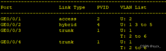 [LSW1-GigabitEthernet0/0/2]port hybrid untagged vlan 3 4 5 6