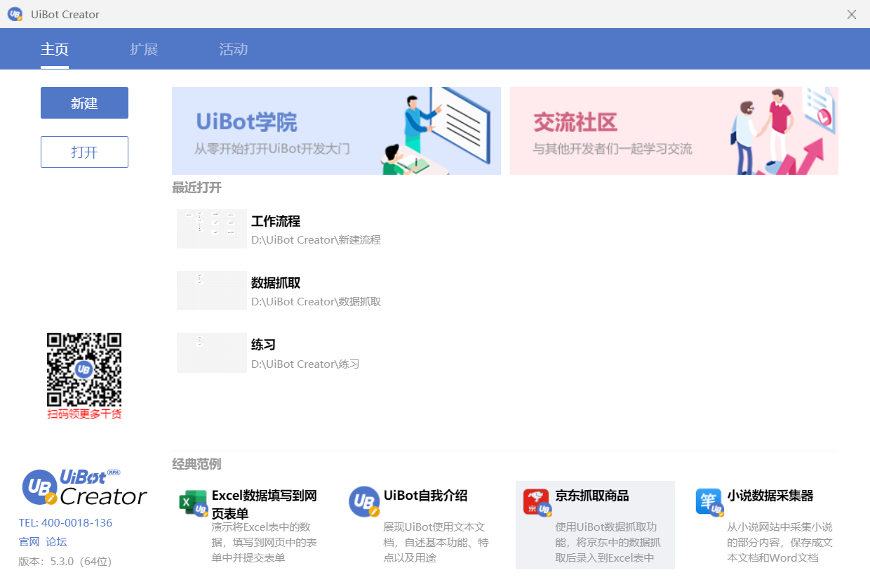 如果只需要少量的电脑运行流程,可以由Creator制作出流程后,直接打包分发给Worker使用,Commander不需要参与;如果需要大量的电脑运行流程,比较合适的方式是Creator把流程先上传到Commander,再由Commander统一下发给各个Worker,并统一指挥各个Worker执行流程。一般的开发者,不是应用在商业上,只需要Creator这部分就可以解决许多问题。好了,废话不多说,有想要更多的了解Uibot的,可以点这里https://docs.uibot.com.cn/guide/d1/ch002.html?version=0.3646315550478363#rpa%E7%AE%80%E4%BB%8B
