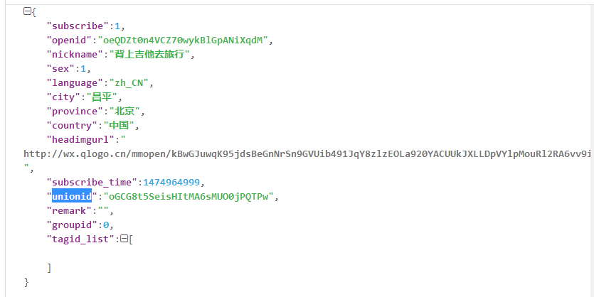"subscribe_time":1474964999,"unionid":"oGCG8t5SeisHItMA6sMUO0jPQTPw","remark":"","groupid":0,"tagid_list":[]}