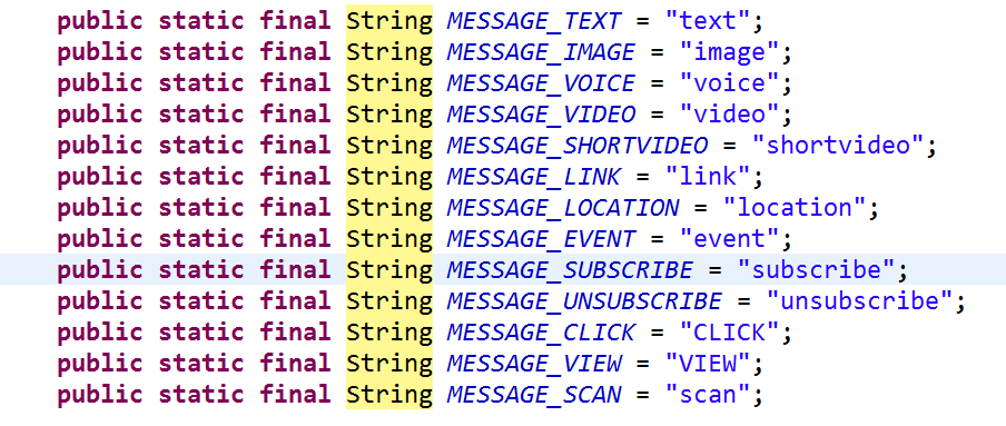 在我们的工具类中提供各种常量,方便在使用不同消息类型的时候,可以直接调用:
