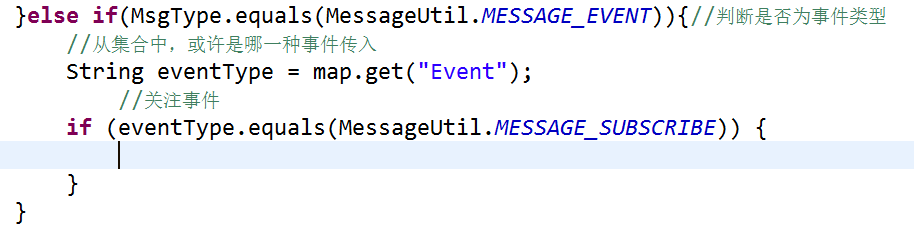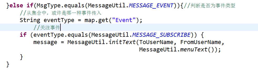 }else if(MsgType.equals(MessageUtil.MESSAGE_EVENT)){//判断是否为事件类型