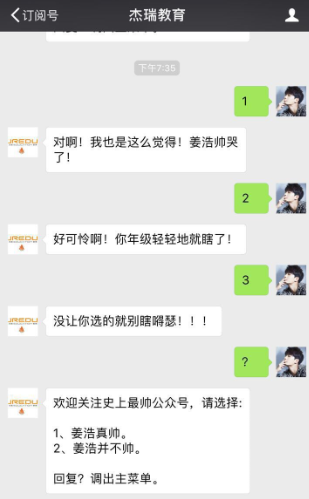 至此,我们本篇文章的“被关注回复与关键词回复”功能就已经介绍并开发完毕。同学们可下载源码或加入杰瑞教育开发交流QQ群(452379712),进行进一步的学习交流。