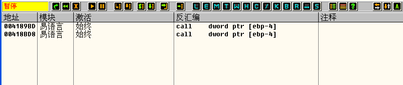 var Addr // 局部变量 mov Addr,401000 // 指定地址为401000 loop: find Addr,#740E8BD38B83????????FF93????????# // 查找特征码,并将地址放入RESULT(00401000) cmp $RESULT,0 // 如果为0则直接跳出循环 je Exit add $RESULT,0A // 相加 (00401000+0A=0040100A) bp $RESULT // 下断 add $RESULT,1 // 每次递增1 mov Addr,$RESULT // 将地址赋给Addr jmp loop Exit: ret