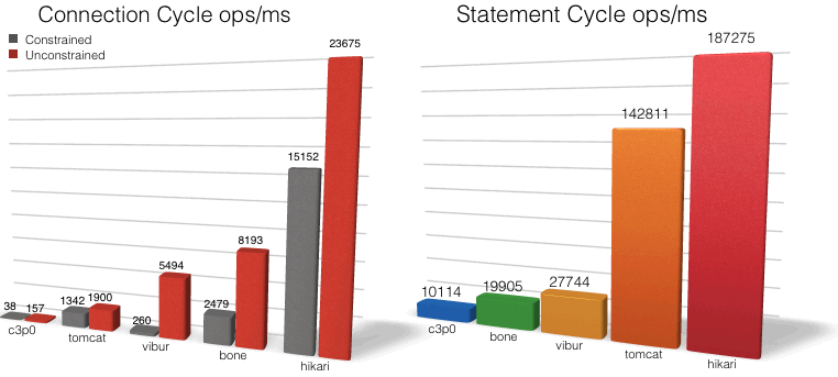HikariCP 是一个高性能的 JDBC 连接池组件。下图是性能的比较测试结果: