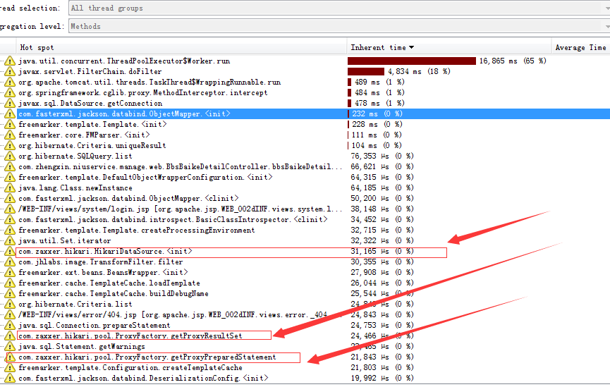 把druid 换掉。上一张jprofiler测试的加载时间图,druid耗时排前三