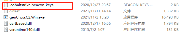 下面就是生成客户端文件了,把CS根路径下面的: .cobaltstrike.beacon_keys文件复制到与genCrossC2.win.exe路径下面: