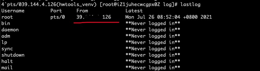 /var/log/lastlog :记录最后一次用户成功登陆的时间、登陆IP等信息