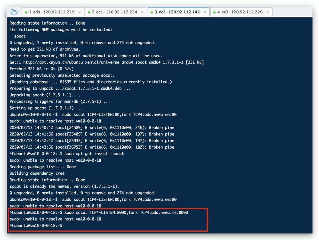 正常启动好team server,接下来我们需要配置一下重定向器,重定向器就是端口转发的功能,你可以使用各种各样的端口转发工具,这里我使用socat来实现: