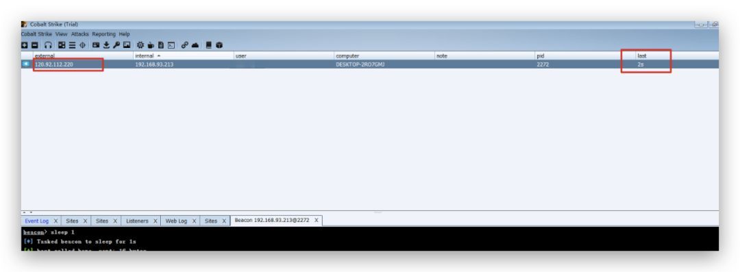 另外需要注意的是,使用了重定向器之后,beacon的外网地址会显示为重定向器的地址