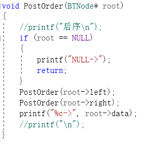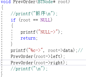 每次进去,我们都先判断当前的节点是否为空,如果为空,我们打印NULL。并且进入下一次递归(前,中,后序遍历都用遍历)