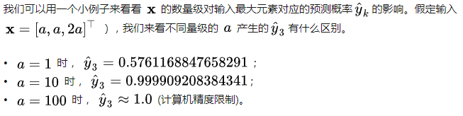 可以看到,数量级对softmax得到的分布影响非常大。在数量级较大时,softmax将几乎全部的概率分布都分配给了最大值对应的标签。