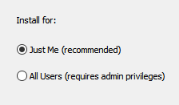 电脑有好几个 Users ,才需要考虑这个问题。其实我们电脑一般就一个 User,就我们一个人使用,如果你的电脑有多个用户,选择All Users。不管是选择哪个,后续的安装流程都是相同的,这里直接选择Just Me,然后继续点击 Next