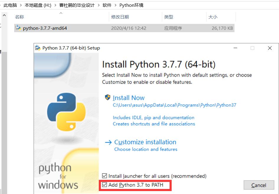 注意:下载完后运行,在打开的界面,注意勾选左下角的Add ….to path选项,然后一路next即可