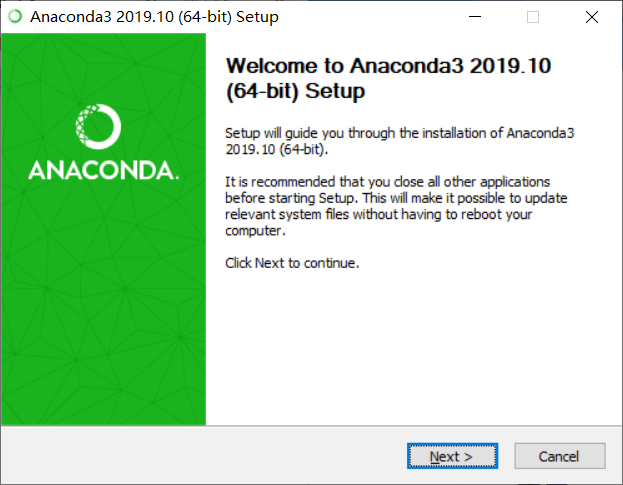 打开下载好的 Anaconda3-2019.07-Windows-x86_64.exe文件,出现如下界面,点击 Next 即可。