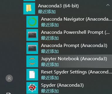 安装完成后在开始菜单会多出一个快捷方式,也就是Anaconda下的4个子程序: