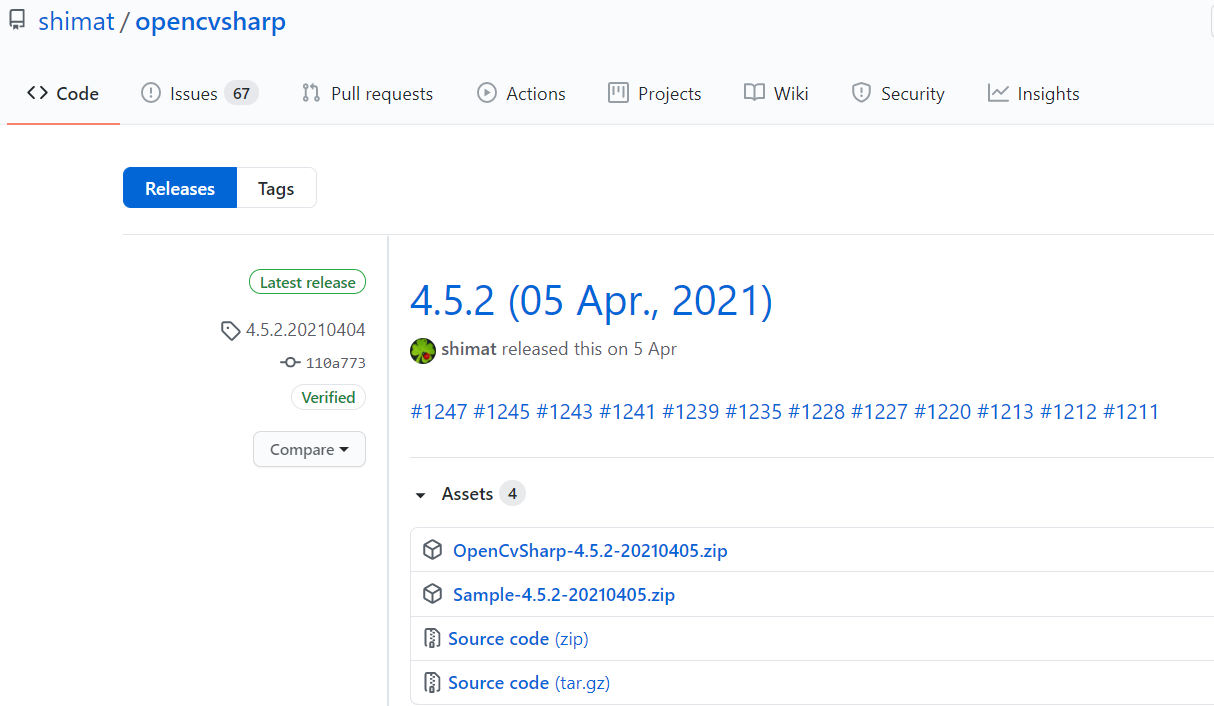 release版本链接:https://github.com/shimat/opencvsharp/releases
