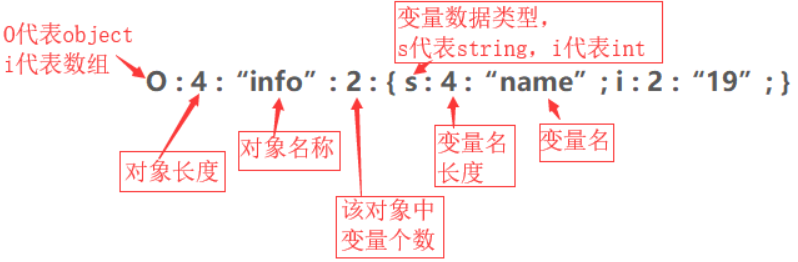O:代表object 1:代表对象名字长度为一个字符 S:对象名称 1:代表对象里面有一个变量 s:数据类型 4:变量名长度 test:变量名称 s:数据类型 7:变量值的长度 pikachu:变量值