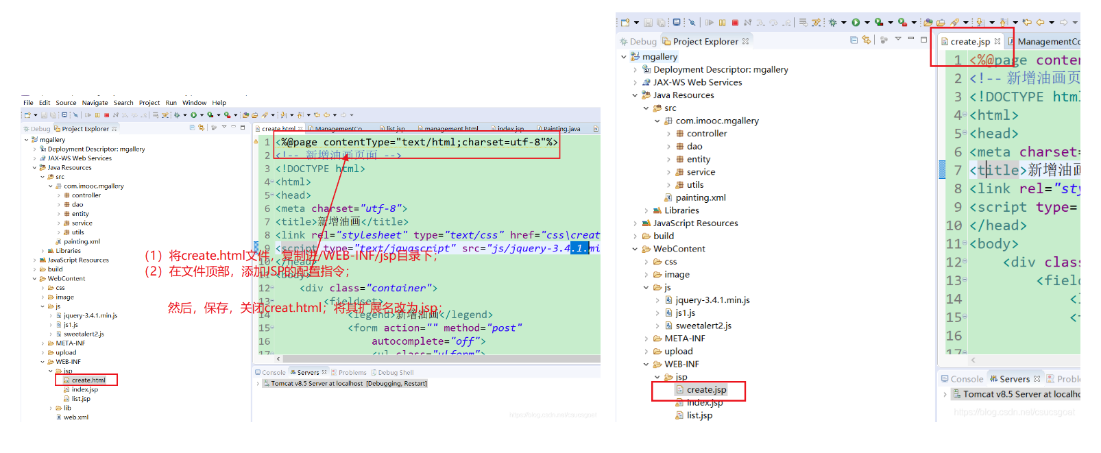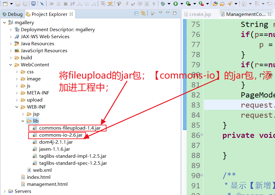 以上就是冷酷飞鸟最近收集整理的关于后台系统四:【新增】功能;(FileUpload组件) 0.新增功能需要完成的功能概述:1.将新增页create.html添加到项目中2.在ManagementController类中,添加访问create.jsp的入口3.编写create.jsp:为文件上传做好准备4.在ManagementController类中,添加接收create.jsp表单提交的方法; 5.启动程序:(附加一点说明:Tomcat发布目录)的全部内容,更多相关后台系统四:【新增】功能;(FileUpload组件) 0.新增功能需要完成内容请搜索靠谱客的其他文章。