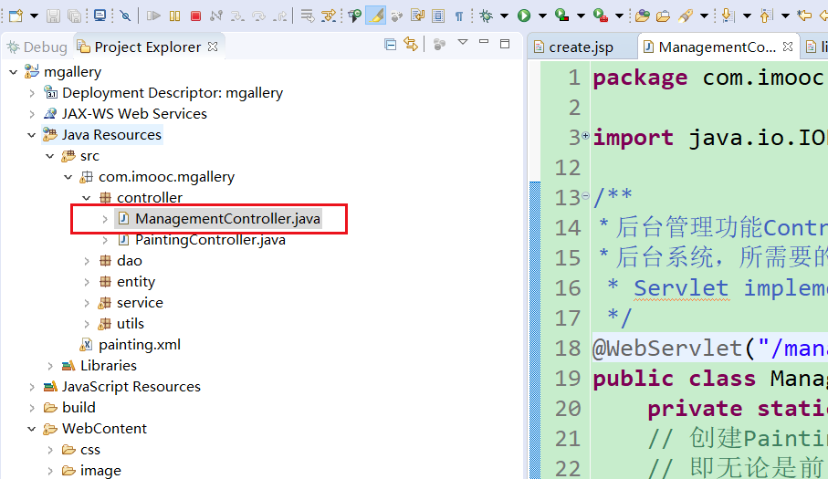 2.在ManagementController类中,添加访问create.jsp的入口
