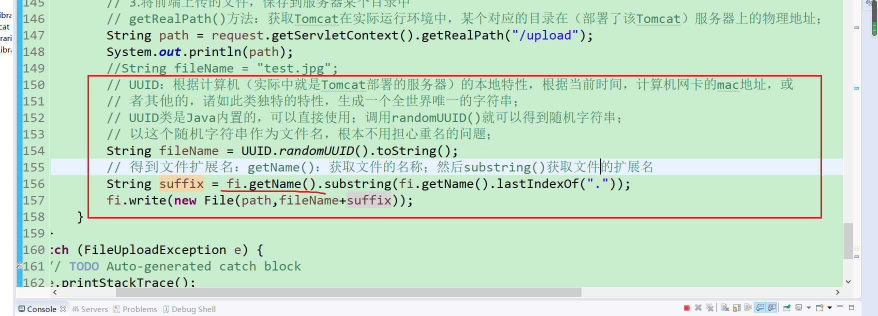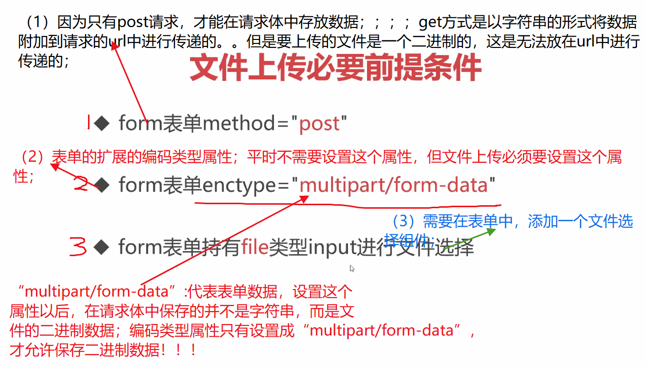 (1)不借助第三方组件,“在服务器端”采用传统的策略处理【设计文件上传的请求】时:是不行的;