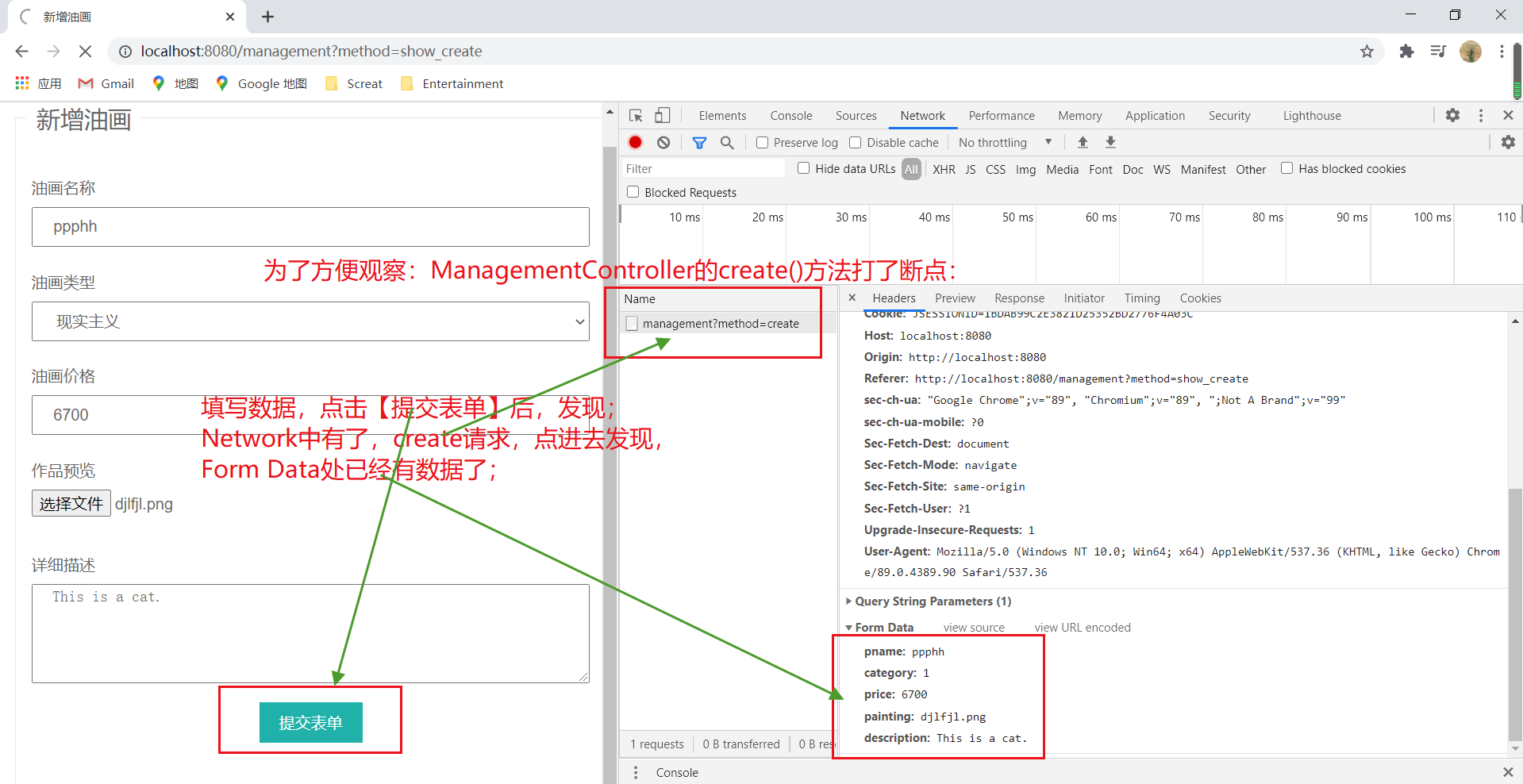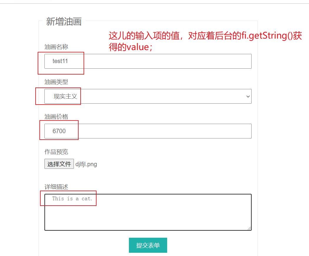 点击【提交表单】后,会根据Controller中编写的逻辑,跳转到油画列表页面;