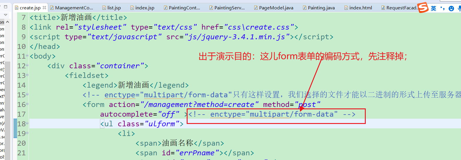 (1.2)演示2:设置form表单的编码方式:enctype="multipart/form-data";