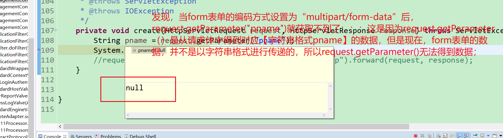 (1.1)演示1:如果不设置form表单的编码方式:enctype="multipart/form-data";