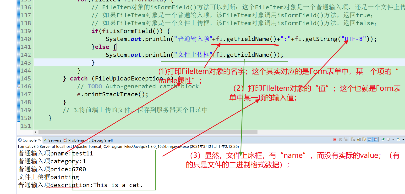 //System.out.println("普通输入项"+fi.getFieldName()+":"+fi.getString("UTF-8"));