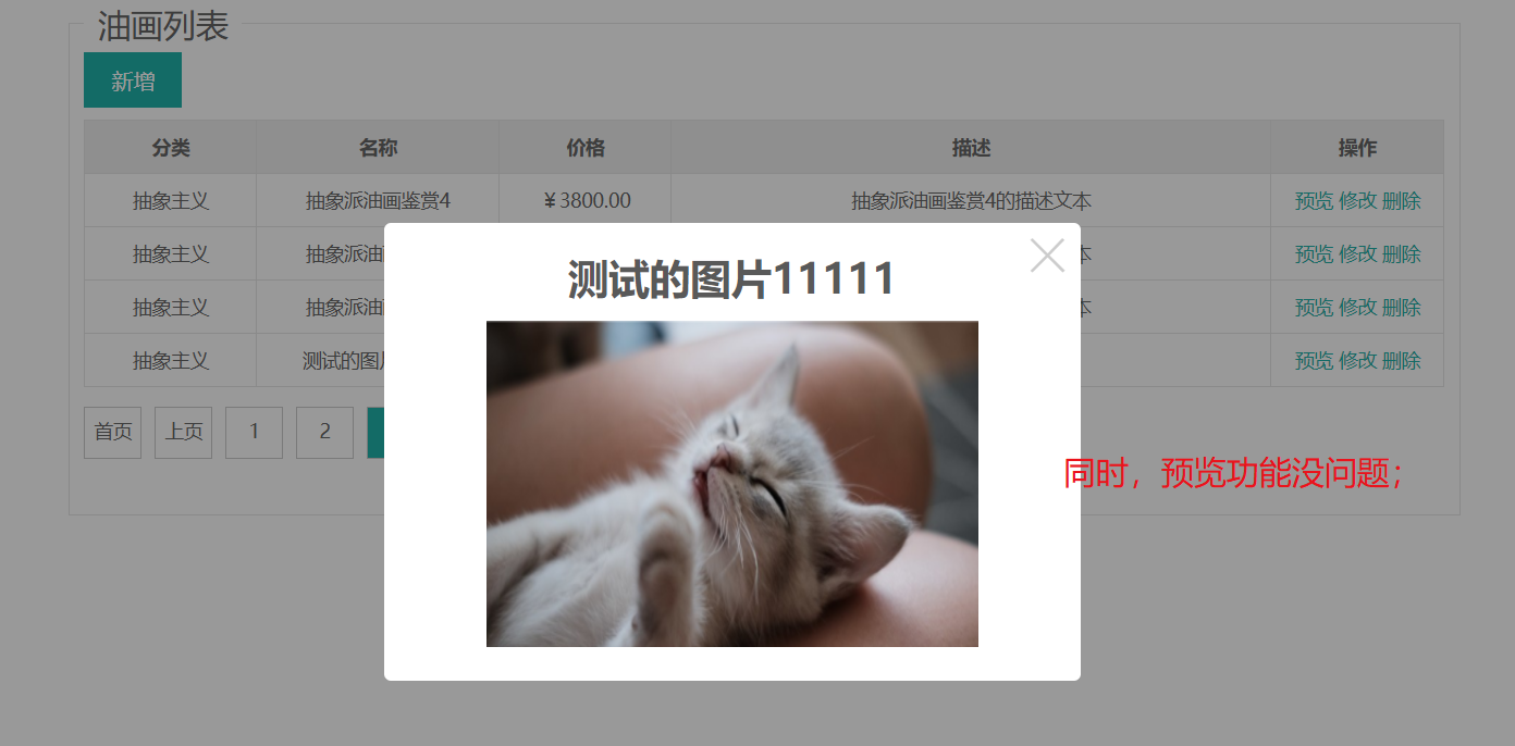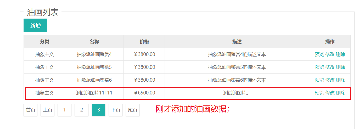 // 由此,后台部分,油画的新增操作已经完成了;;;;然后可以再跳转到油画列表页面,对数据进行展示