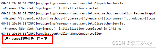 在地址栏输入参数name=梁三岁,在控制台就会输出地址栏提交的参数值