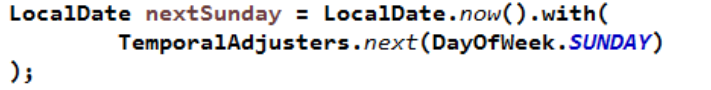 - TemporalAdjuster : 时间校正器。有时我们可能需要获取例如:将日期调整到“下个周日”等操作。