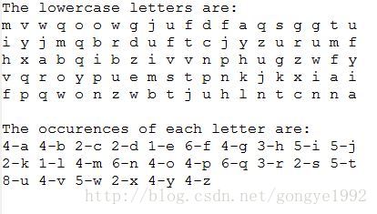 //随机生成100个小写字母,统计26个字母各自出现的次数