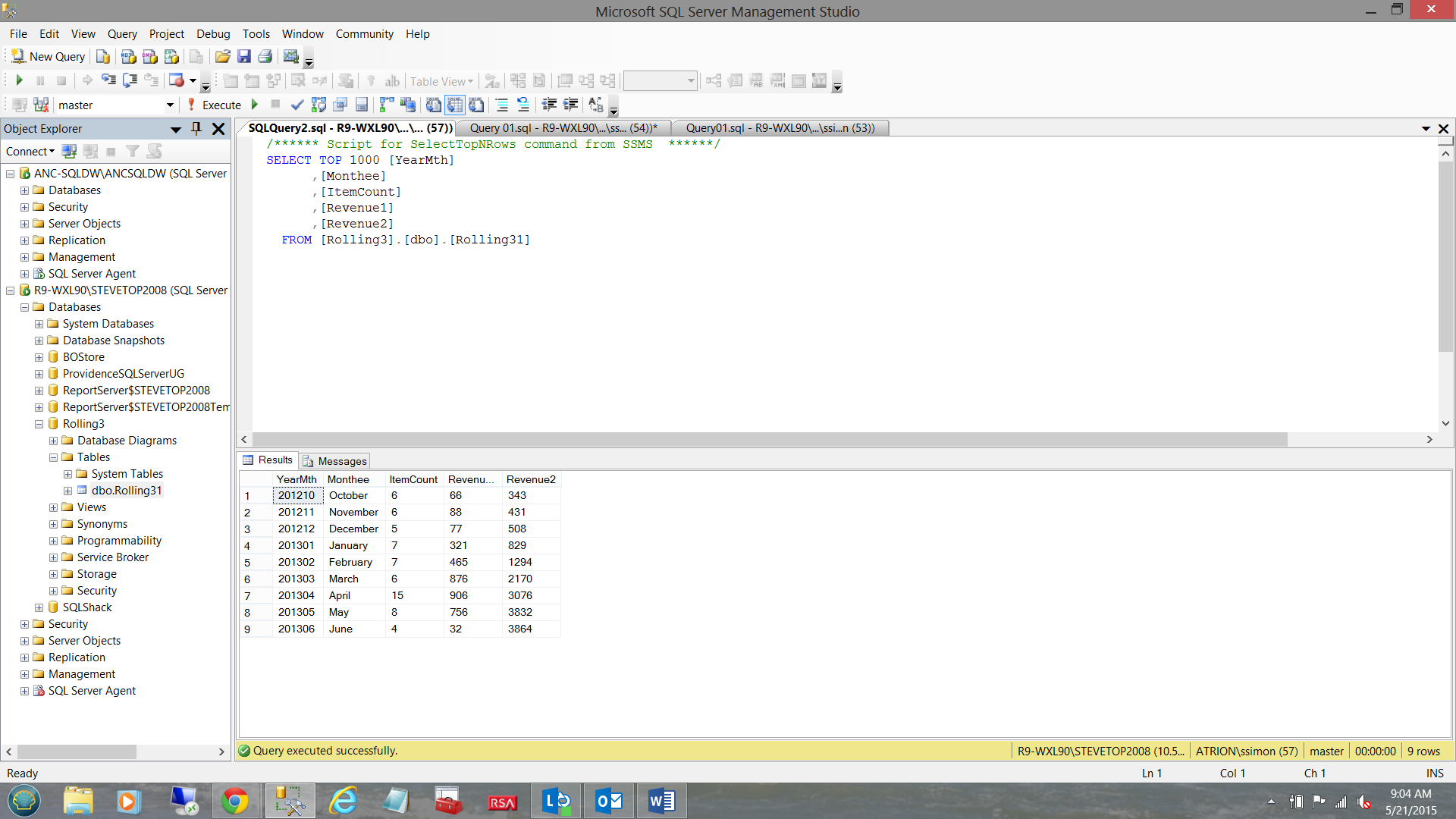 A few days ago I received an email from a gentleman in the healthcare industry. He had read an article that I had previously published a few years back on a well known SQL Server website. Based on the original article, he requested a few ideas on how to expand the sample code to do a rolling three-month revenue summary, in addition to a rolling three-month revenue average.