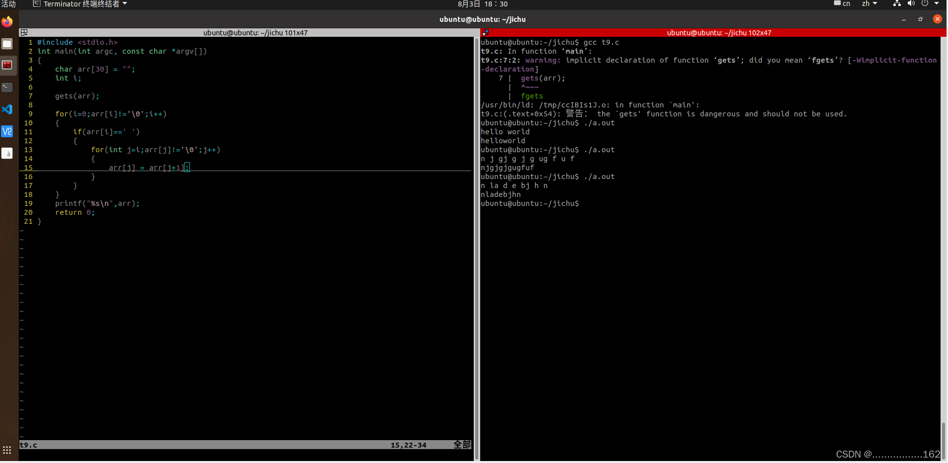 1.终端又输入一个字符串,求删除空格后的字符串。