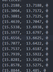 事情的起因是,我通过程序导出的字体的轮廓点(500 多个点),但是我想通过另一个软件显示出来,可是它需要的格式是要把每个坐标用 { } 给包围起来,同时保留原数字,由于数据有 500 多个点,所以一个个手动加显然是不合适的。