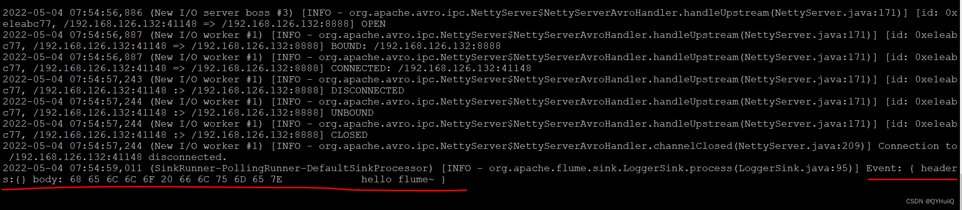 [root@hadoop01 test_data]# flume-ng avro-client -c /usr/local/wyh/apache-flume-1.8.0-bin/conf -H hadoop01 -p 8888 -F /usr/local/wyh/test_data/test-flume.txt